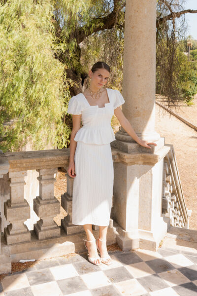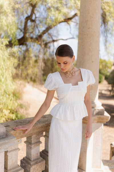 Top de punto brocado con cremallera trasera: sofisticado y versátil, este top de punto brocado combina con una silueta moderna. El cierre con cremallera trasera asegura un ajuste impecable, mientras el diseño permite múltiples combinaciones: desde faldas lápiz hasta pantalones de tiro alto. Ideal para eventos; añade accesorios minimalistas y tacones para un acabado elegante y refinado. Combínalo con nuestra falda Branca.