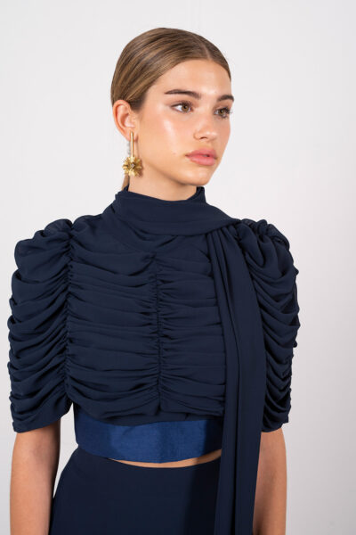 Descubre la capelina de gasa drapeada con foulard multiposición incorporado: lleva la lazada al cuello para un aire sofisticado o déjala suelta para un aire más relajado. Perfecta para cubrir los hombros y la parte superior del torso, aporta ligereza y movimiento con un toque de glamour. Ideal para combinar con blusas lisas o prendas de tirantes, es la prenda clave para elevar tu look sin esfuerzo.