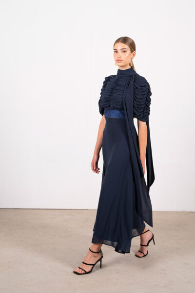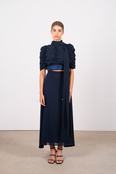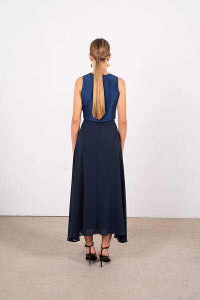 Esta es la falda de gasa que eleva cualquier look: cremallera trasera discreta, cinturilla que define la cintura y un corte de capa que añade movimiento y sofisticación. Su caída suave y translúcida aporta un toque chic y sensual a tu look, ideal para eventos o para darle un giro glam a tu estilo diario.