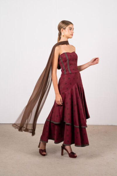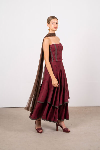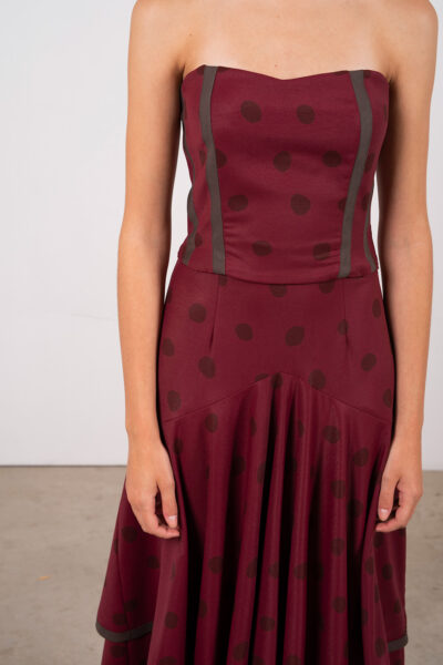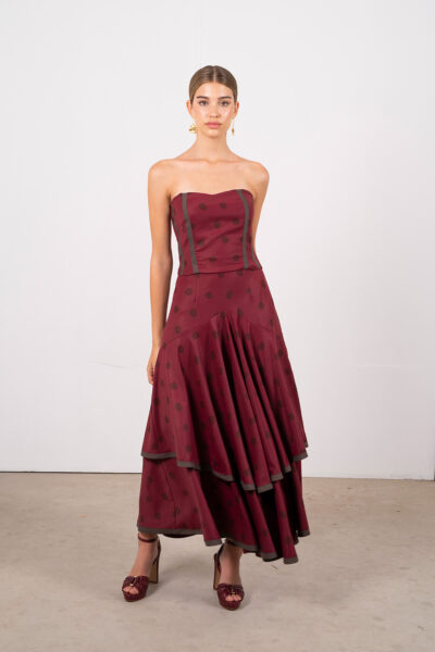 El top palabra de honor de lunares, el print más deseado de la temporada, eleva cualquier look con un toque icónico y femenino. Su silueta limpia esculpe el busto, mientras los detalles de vivos en el cuerpo perfilan y aportan una estructura sutil. Versátil y favorecedor, funciona tanto de día como de noche. Combínalo con falda Pauline o un pantalón de talle alto y sandalias para un conjunto chic y atemporal.